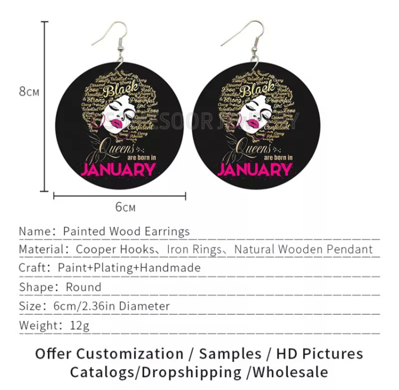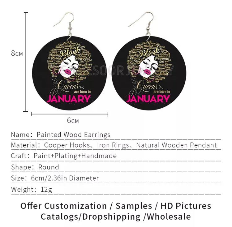 生まれ月木製ピアス。